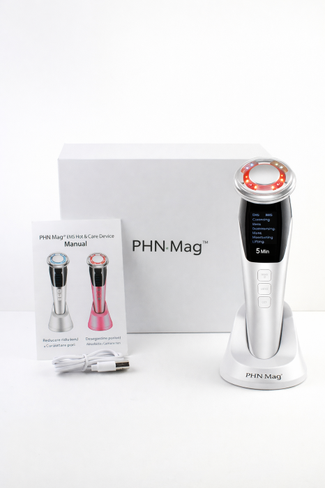 Transformă rutina ta zilnică într-un tratament profesional de îngrijire a pielii, chiar la tine acasă, cu Aparatul Facial 5 în 1 PHN Mag™.