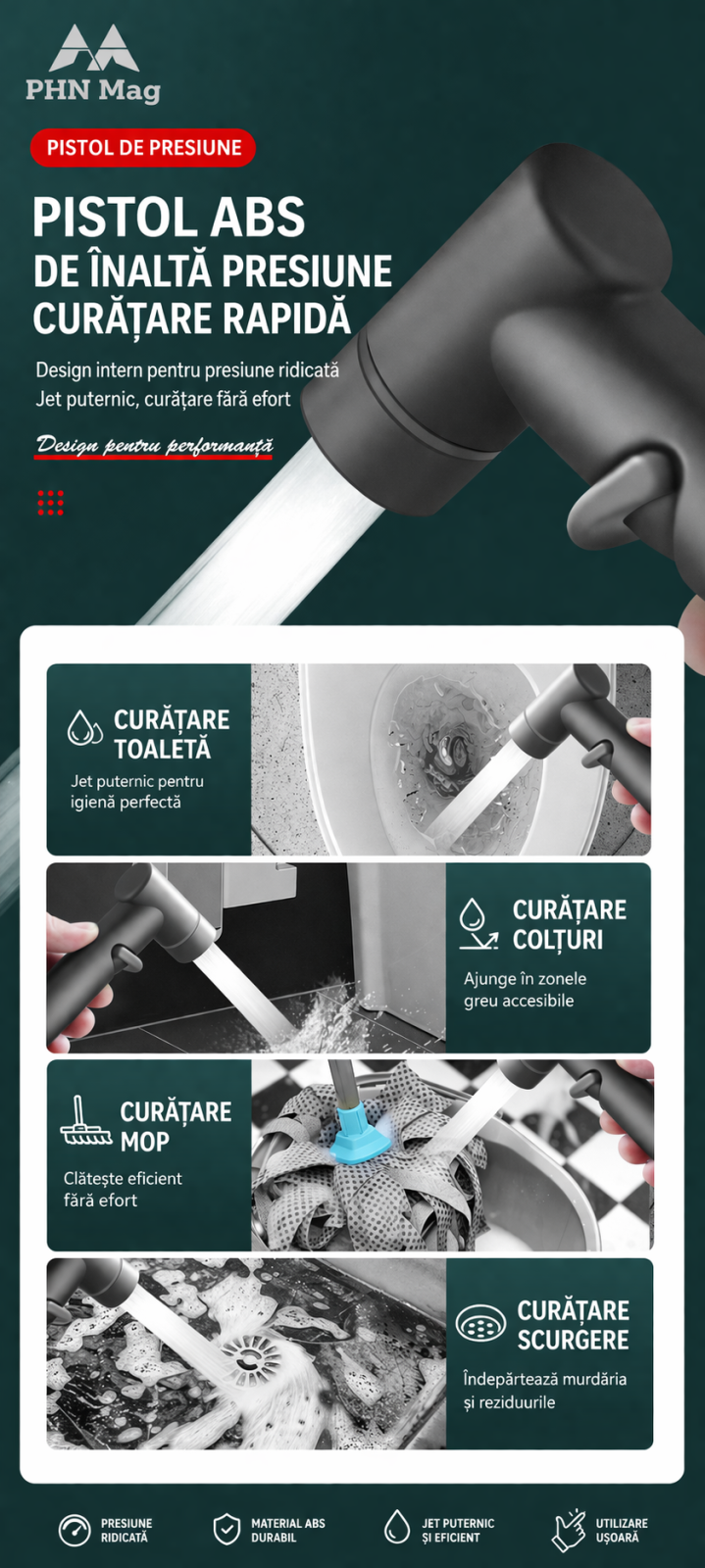 Transformă baia ta într-un spațiu modern, practic și igienic cu setul complet de bideu manual marca PHN Mag, ideal pentru igiena personală și curățenie generală. Acest duș igienic cu pulverizator ergonomic este perfect pentru utilizare zilnică, fiind prevăzut cu furtun spiral flexibil, valvă de reglare a presiunii și design premium negru mat.